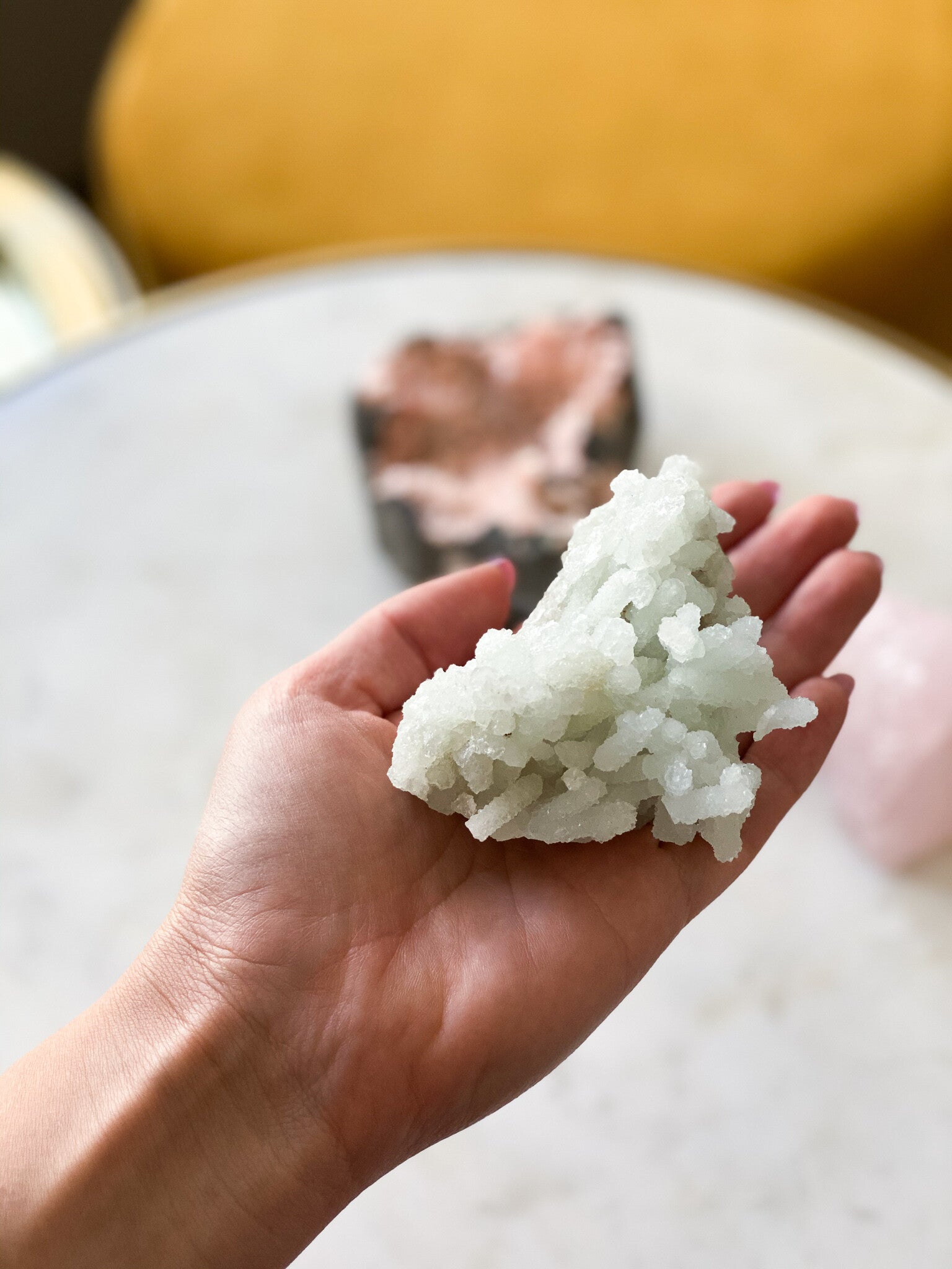 Green Calcite works on the heart chakra and on your inner balance. It softens your emotions and helps with any skin issues. Green Calcite helps you to let go what you no longer need. Situations, people, maybe your job. It gives you all the courage and hope you need. Learn to speak from the heart.