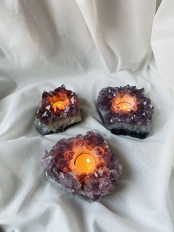 Light up the Amethyst in your living room for some extra bonding and confidence and calmness for an open communication. In your office for easy decision-making, better intuition or stress-relief. Or in your bathroom to relieve anxiety during your soothing bath or put it on your nightstand before you go to sleep to help you with insomnia and other sleeping problems.