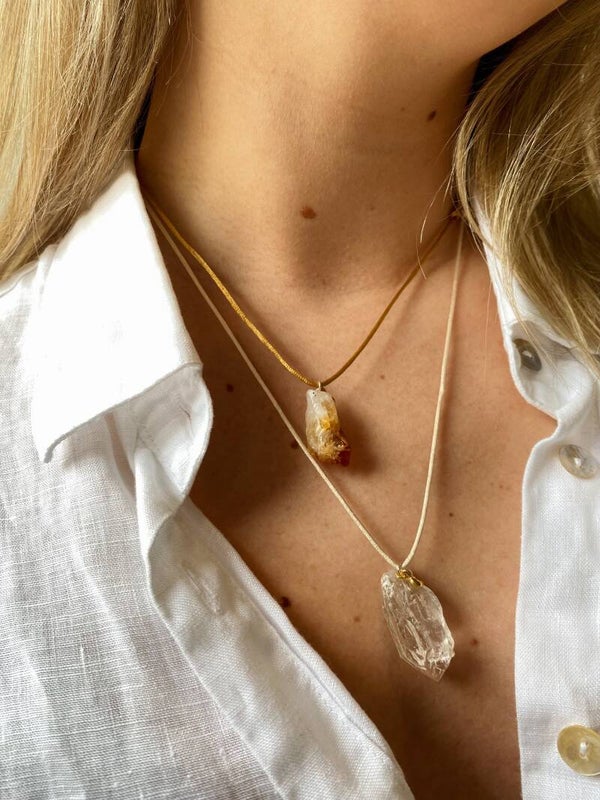 The satin cord is adjustable to a maximum of +/- 70 centimeters round. You can either wear it as a cute little choker, or wear it as a longer necklace so you can keep the crystal close to your heart all day long!