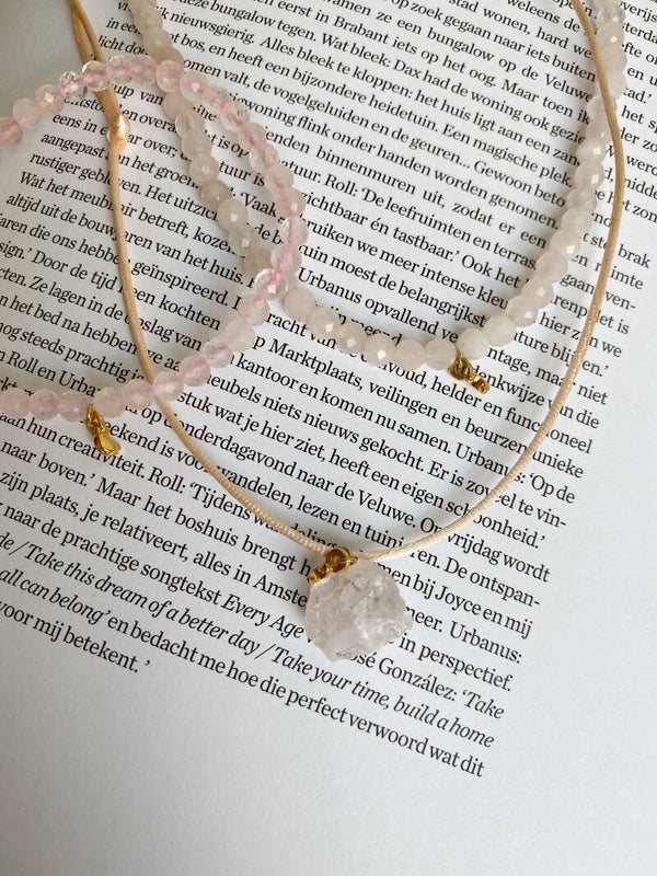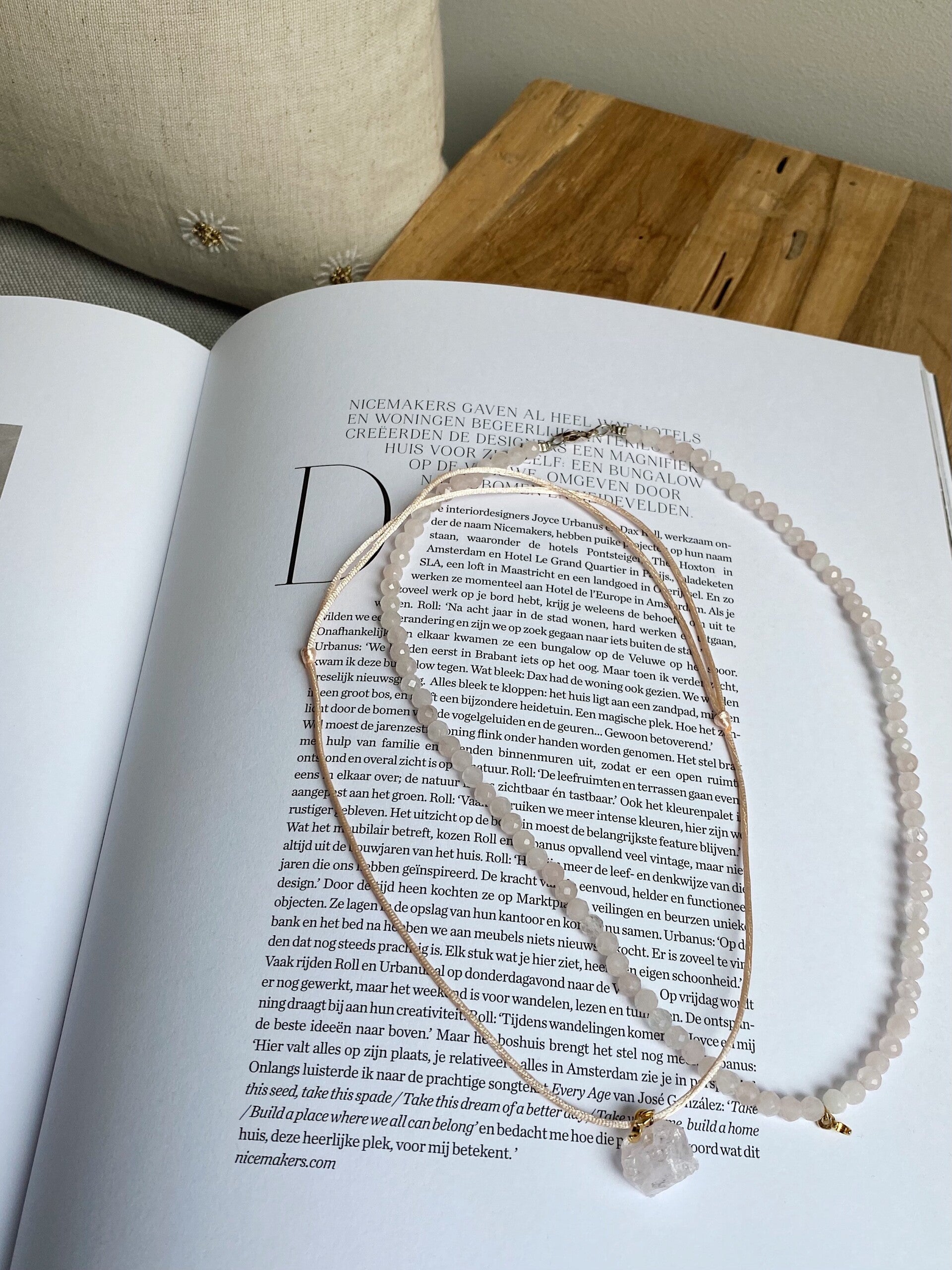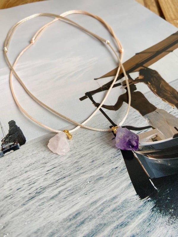 The satin cord is adjustable to a maximum of +/- 70 centimeters round. You can either wear it as a cute little choker, or wear it as a longer necklace so you can keep the crystal close to your heart all day long!